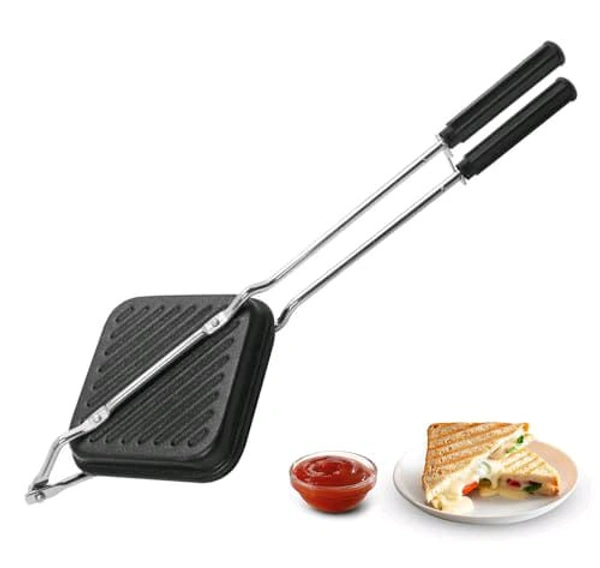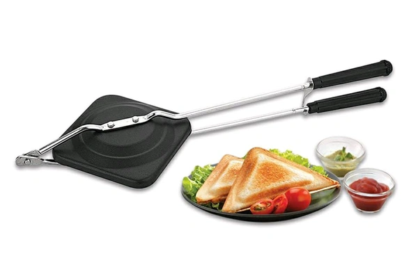 No need for electricity or fancy appliances—just place it on your gas stove, add your stuffed bread slices, close and lock the toaster, and cook evenly from both sides. In just a few minutes, you’ll have a hot and delicious sandwich ready to serve.